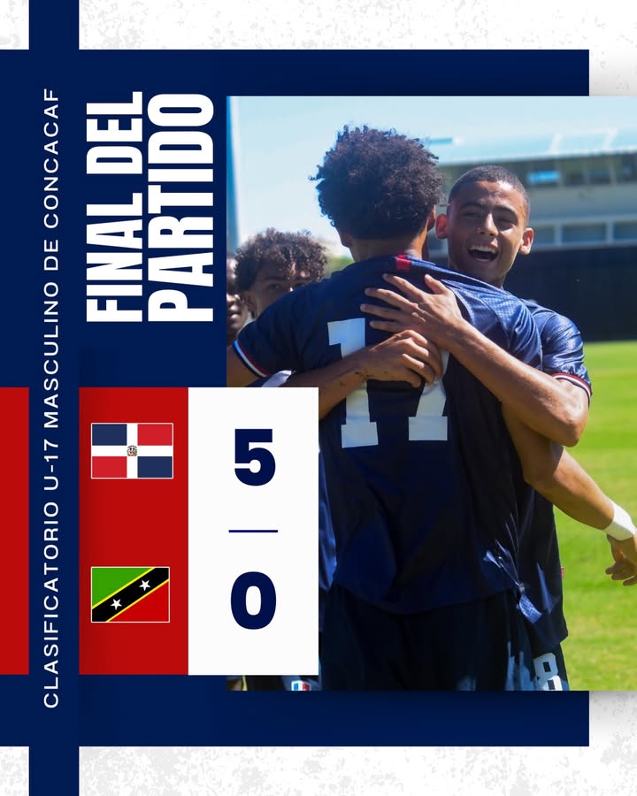La Selección Nacional Masculina Sub-17 de República Dominicana tuvo un estreno soñado en el Clasificatorio del Campeonato Sub-17 de la CONCACAF, al imponerse de manera categórica 5-0 ante su similar de San Cristóbal y Nieves (St. Kitts and Nevis), en un partido donde el conjunto quisqueyano dominó de principio a fin y dejó claras sus credenciales en el torneo.